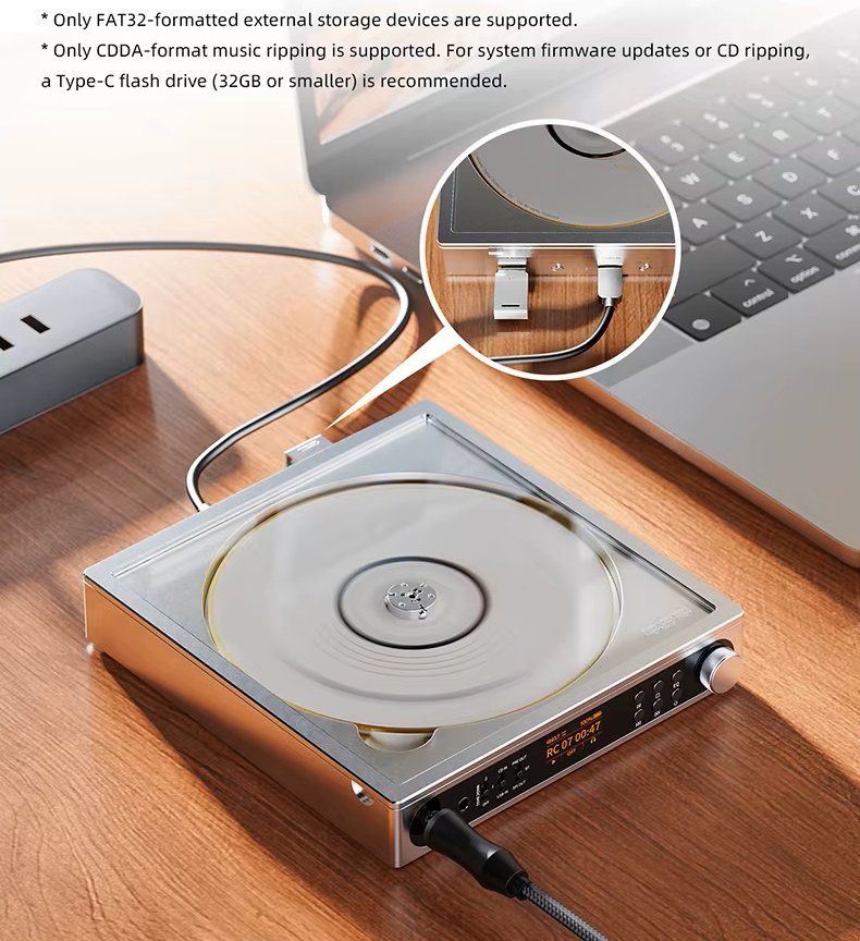 *Due to the structural limitations of a portable CD mechanism, we cannot guarantee the perfect reading of all CDs. We will continue to optimise disc-reading performance through future firmware upgrades.