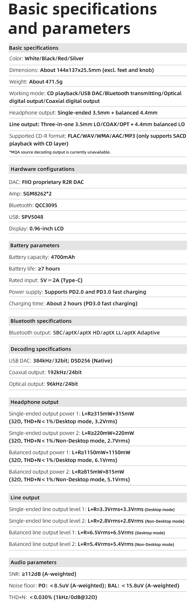 *Data is based on testing from FIIO labs and is for reference only. Actual results may vary due to differences in environment and usage scenario.