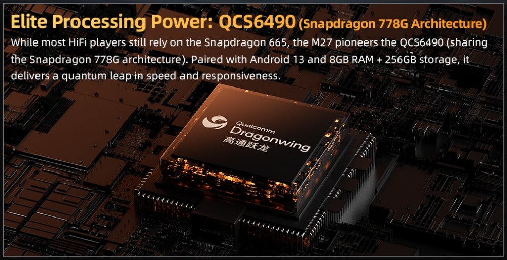 FIiO M27 is a brand-new flagship portable Hi-Res Audio Player designed for audiophiles who seek ultimate level performance. Equipped with dual ES9039S PRO DAC chips and a massively powerful amplification section, the FiiO M27 delivers outstanding performance with next-level clarity and a super clean background. FiiO M27 has a rated output power of 5W per channel, and it can easily drive even the demanding headphones in the market without breaking a sweat. Featuring Qualcomm Snapdragon 770G SoC along with 8GB LPDDR5 RAM, the FiiO M27 offers silky smooth Android 13 OS. Users can download and install different media applications and enjoy their music with the application of their choice. Additionally, FiiO M27 has 256GB internal storage and features dual microSD card slots, each supporting 2TB microSD cards. You can now take your whole music backup anywhere you go with the FiiO M27. On the battery front, the M27 houses a 9,200mAh battery that provides all-day listening without worrying about the battery running out. Get your headphones ready, FiiO M27 is coming to take their performance to the next level!!