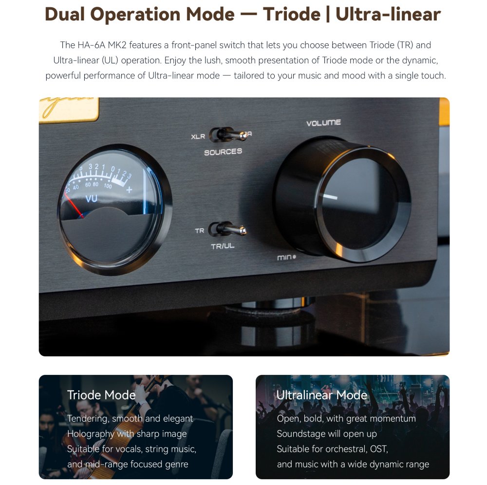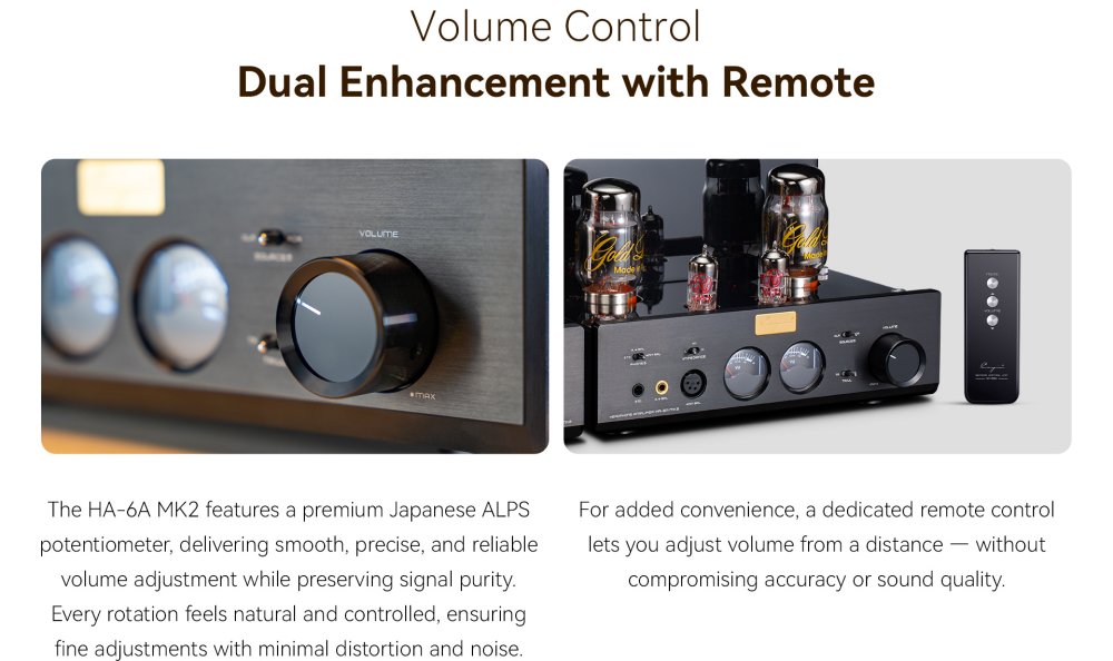 The HA-MK2 is built for tune enthusiasts, supporting a wide range of compatible vacuum tubes. Swap and experiment freely to match your personal taste or listening environment. Each tube type offers its own sonic character, letting you shape your own sound and explore different tonal flavours.
