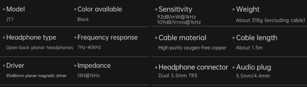 • FiiO Jade Audio JT7 Open Back Planar Headphones