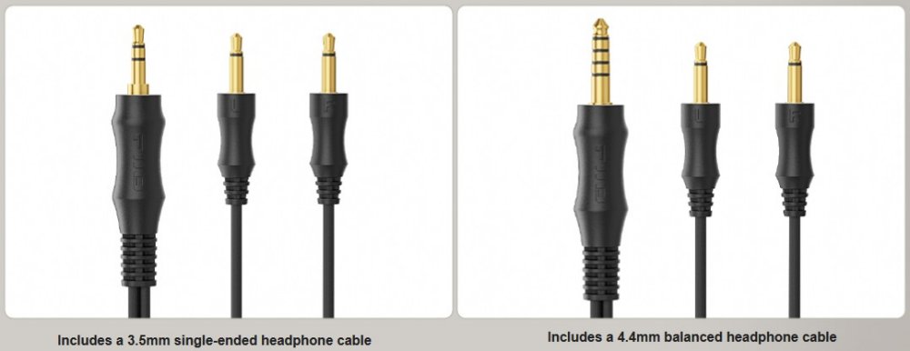 FiiO JT7 has a detachable cable design featuring dual 3.5mm connectors on the headphone side. FiiO includes two stock cables, one terminated with a 3.5mm plug, the other with a 4.4mm termination.