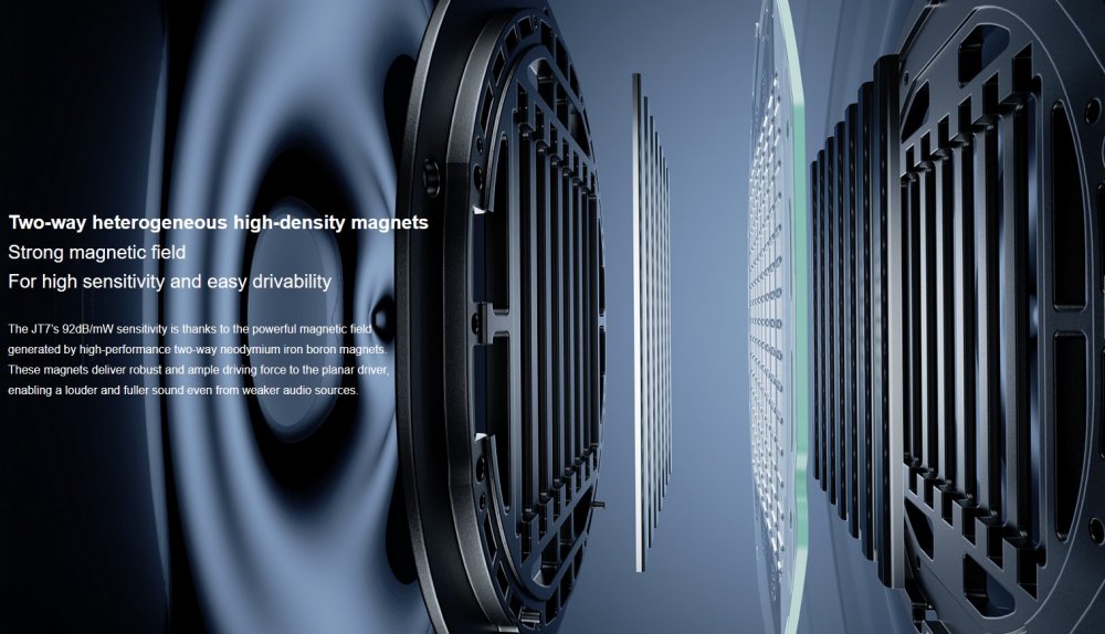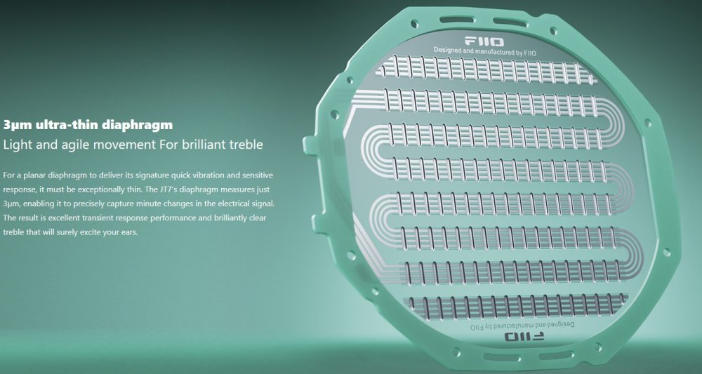 FiiO has developed a large 95x86mm planar magnetic driver for the JT7. This driver is designed from the ground up with in-depth R&D for different components, including the diaphragm, voice coil, and magnetic circuit. Being totally in-house developed, the driver has guaranteed consistency and promises excellent sound quality. It utilizes a 3µm ultra-thin diaphragm that offers light and agile movement, ensuring crystal clear sound response across a wide frequency range.