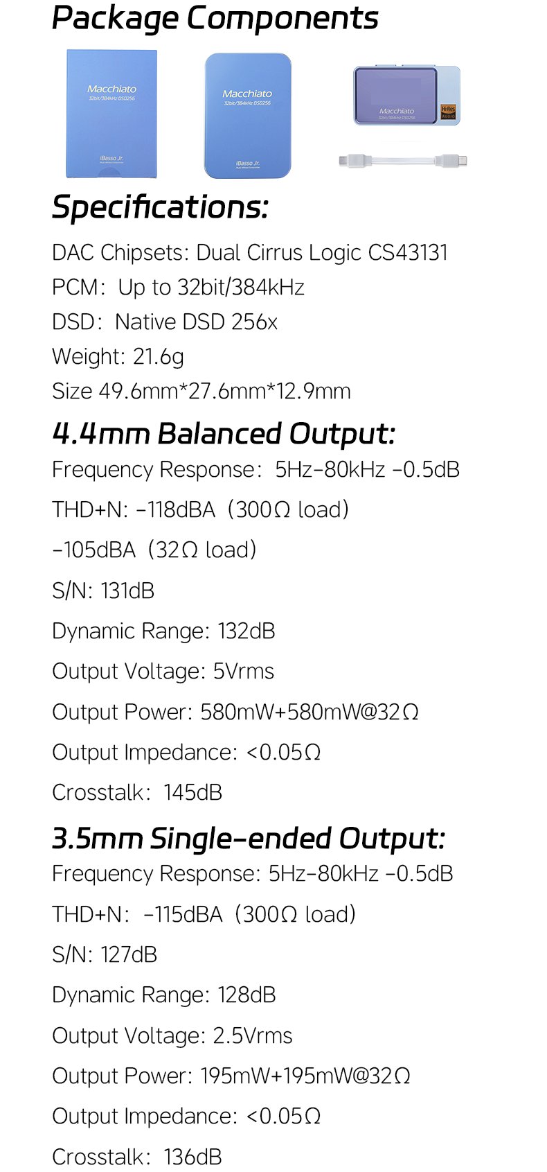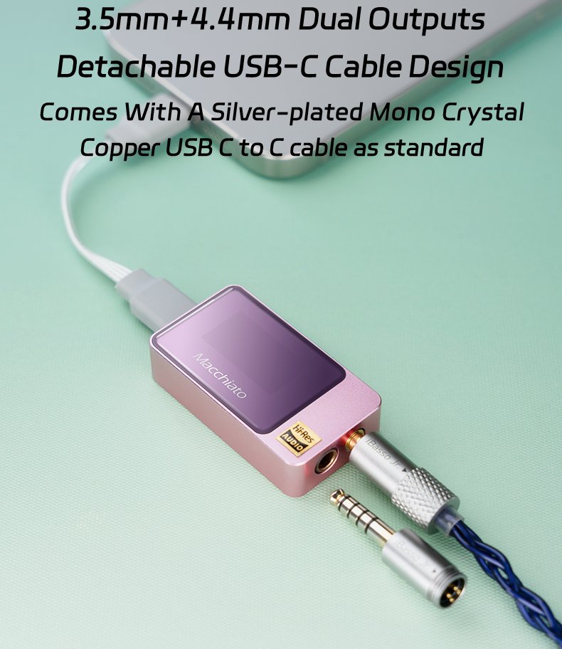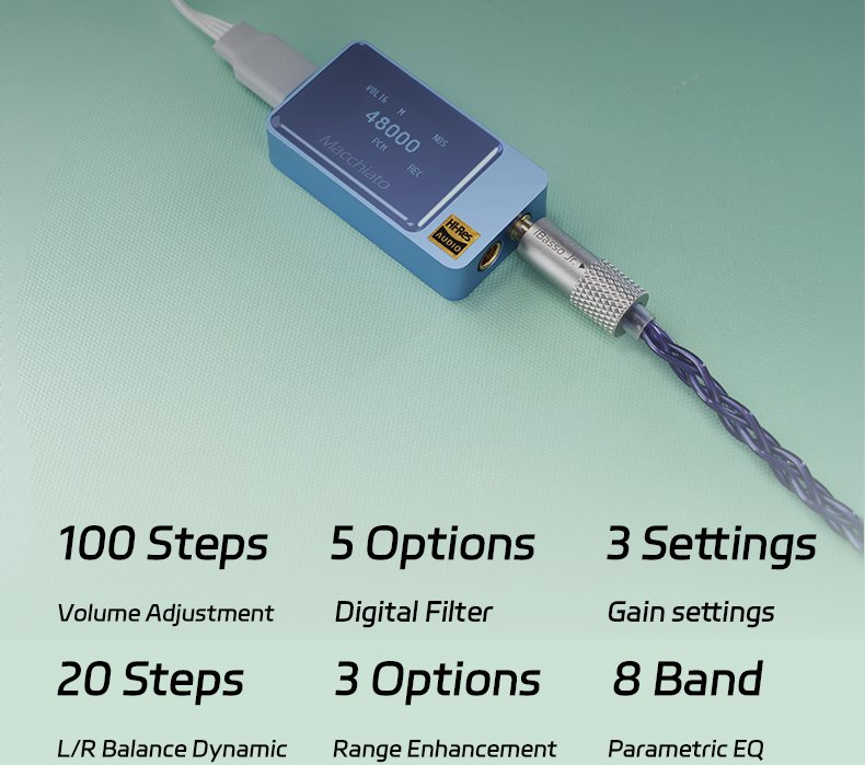 Smartphone HiFi sound card, Plug and play, providing amazing sound quality with your wired IEMs. With the Macchiato, you can enjoy and build your portable HiFi system. Whether listening to music, watching a movie, or playing games, the Macchiato brings rich details and ultra-low latency that TWS cannot match. If the sound of TWS is the grainy 720P screen from ten years ago, then what Macchiato brings is a leap in auditory 4K quality.