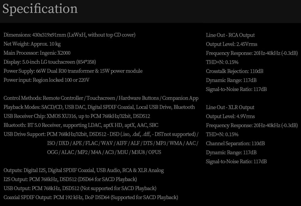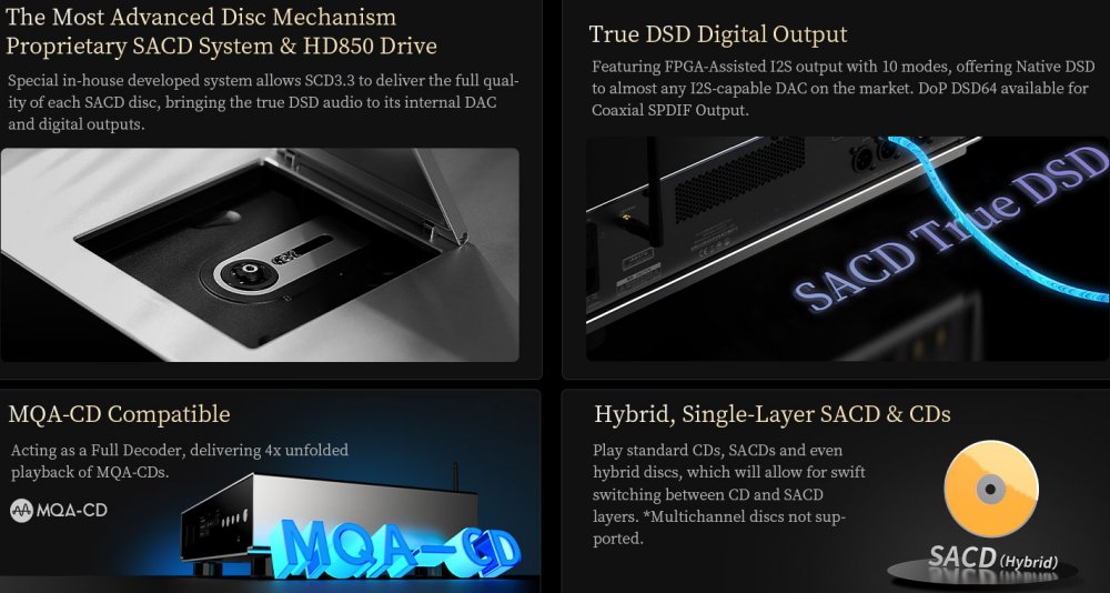 • True DSD data from SACD for internal DAC and Digital Outputs (I2S & Coaxial)