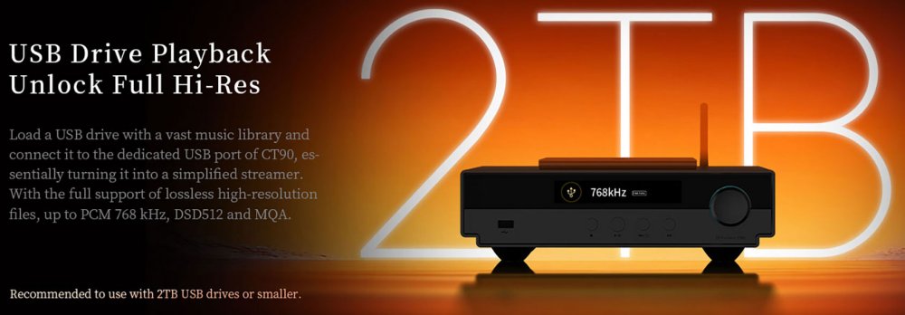 The transport also supports direct playback from USB storage devices up to 2TB, handling a wide range of formats including high-resolution PCM, DSD, and MQA files. Operation is intuitive thanks to the large 4.8-inch high definition display and support for remote control via the Eddict Player app. Together, these features make the CT90 both powerful and effortless to use.