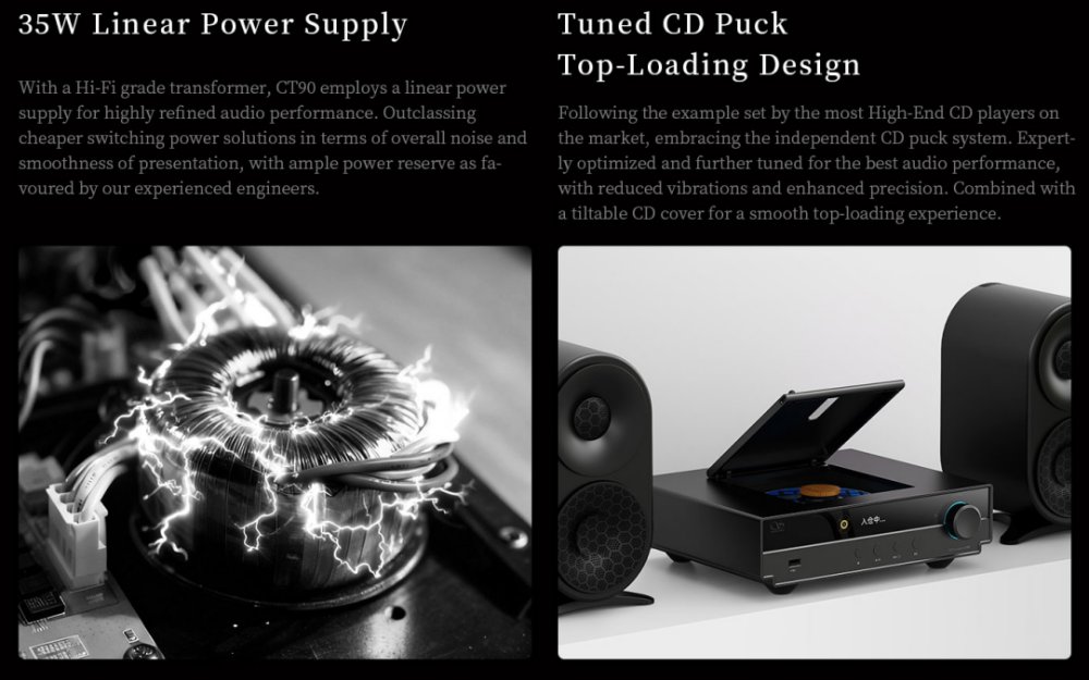 Its top-loading disc chamber and precision-tuned CD puck ensure stable rotation and reliable data retrieval, reducing vibration and read errors. Every mechanical and electronic element is engineered to work in harmony, allowing the CT90 to reveal the inherent musical qualities of the CD format with clarity, flow, and refinement.